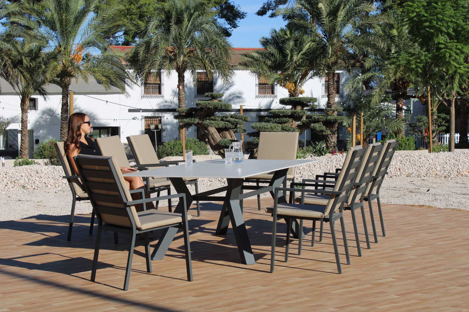 Sillones y mesas fijas y extensibles en aluminio y sets de gran diseños y calidad pensados para para terraza y Horeca.