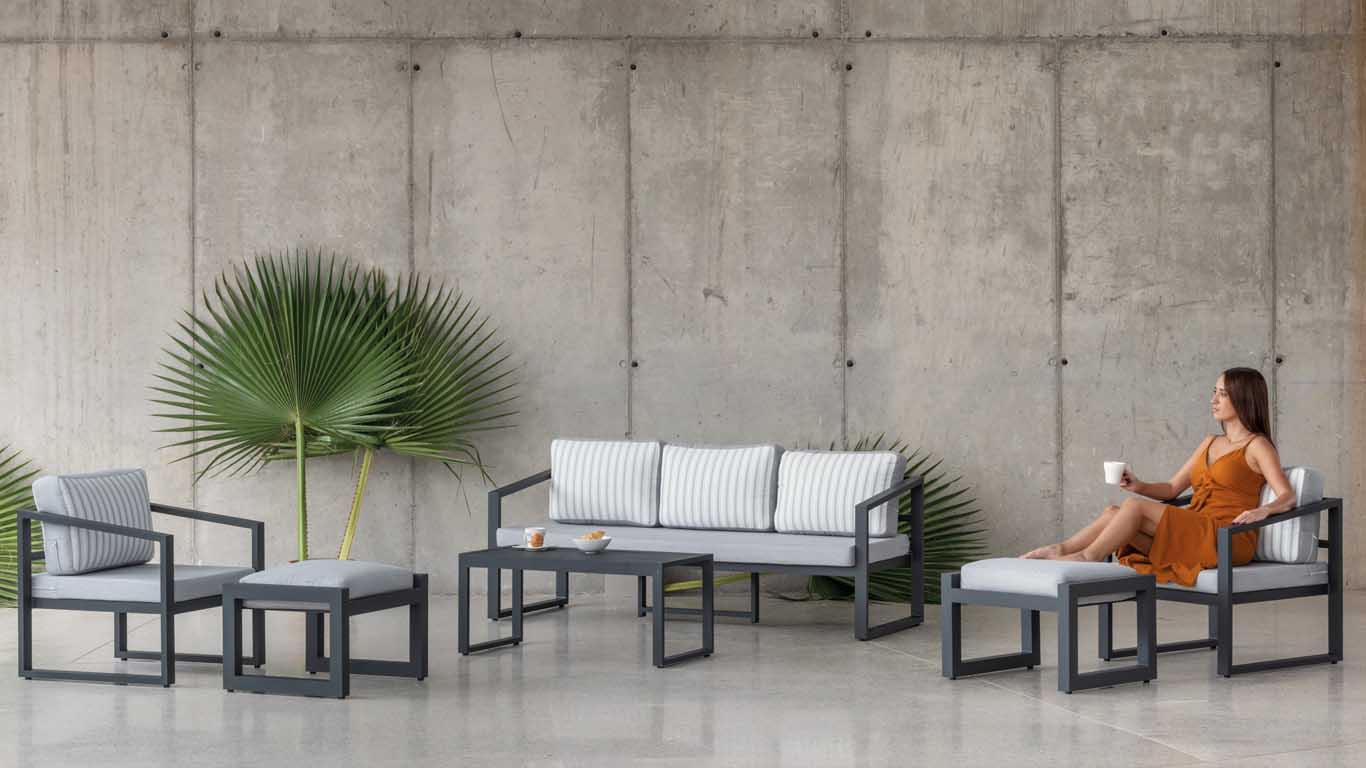 Sus acabados minimalistas y selección de tapizados de gran durabilidad y fácil limpieza brindan versatibilidad a cualquier ambiente exterior.