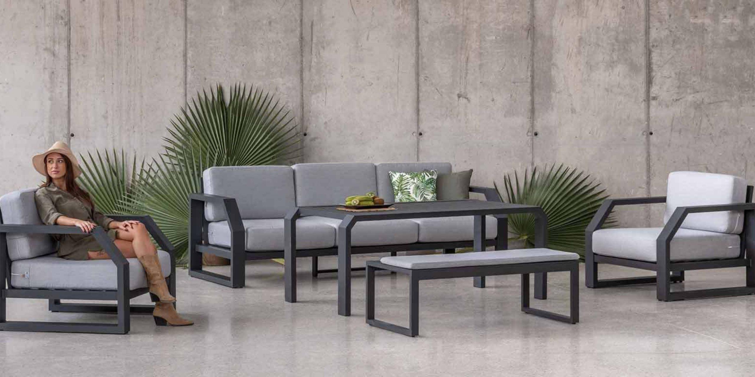 Nuestra línea de sofás de exterior a medida Podium resalta debido a su estructura de aluminio premium y su estilo de líneas rectas y contundentes. Un detalle que la diferencia notablemente es su perfil de aluminio más ancho que cualquier otro disponible en nuestro catálogo.
