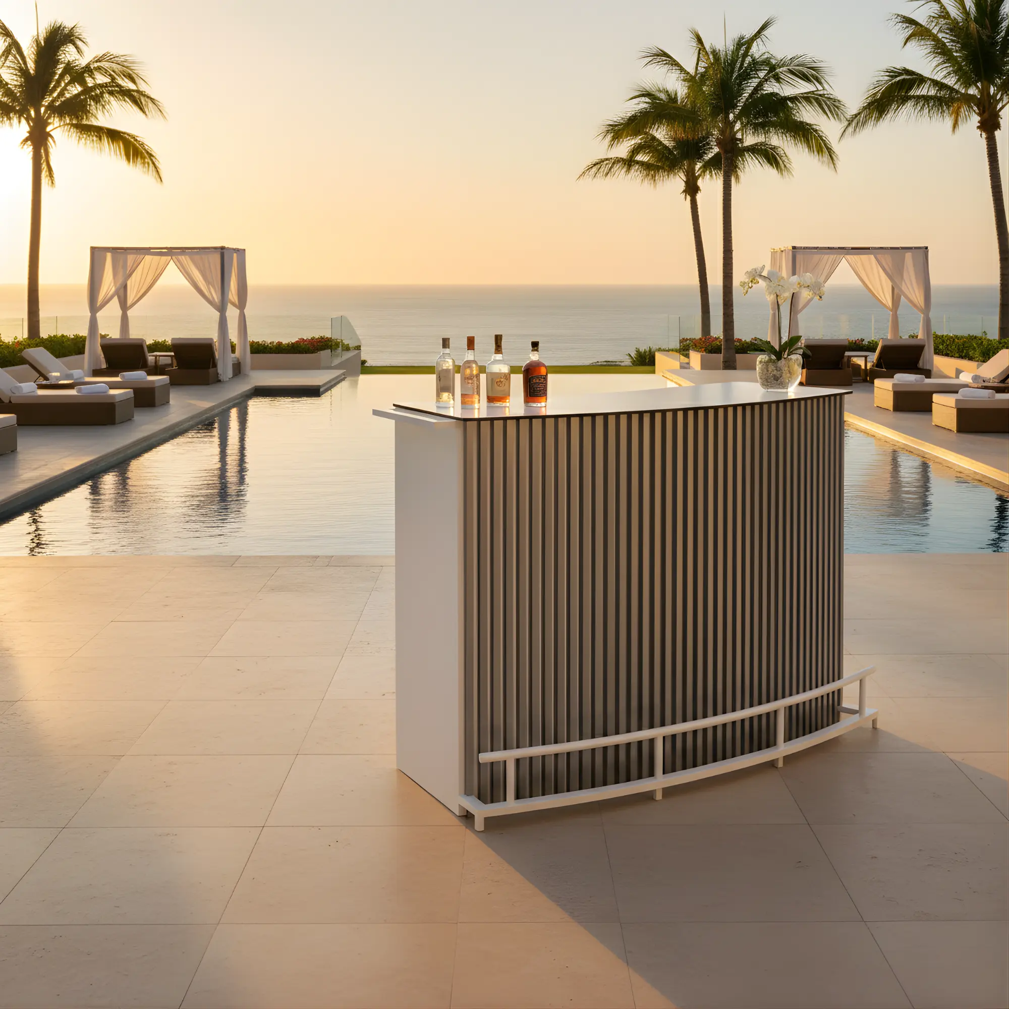 La barra de bar Dantel 85 combina diseño moderno y resistencia. Perfecta para interiores y exteriores, es ideal para bares, terrazas y jardines, ofreciendo funcionalidad y estilo.