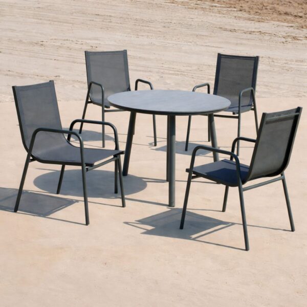 Conjunto de mesa y 4 sillas REHIN/MUNDRA ideal para restaurantes que necesitan mesas amplias para varios comensales. Ofrece estabilidad, resistencia y un diseño moderno pensado para uso intensivo en hostelería.