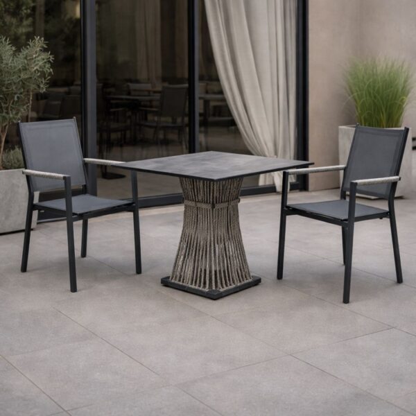 Conjunto de mesa y dos sillas ALBI 90 /MOASIS perfecto para restaurantes y cafeterías que buscan mesas elegantes para dos personas. Combina funcionalidad, estabilidad y durabilidad para hostelería.