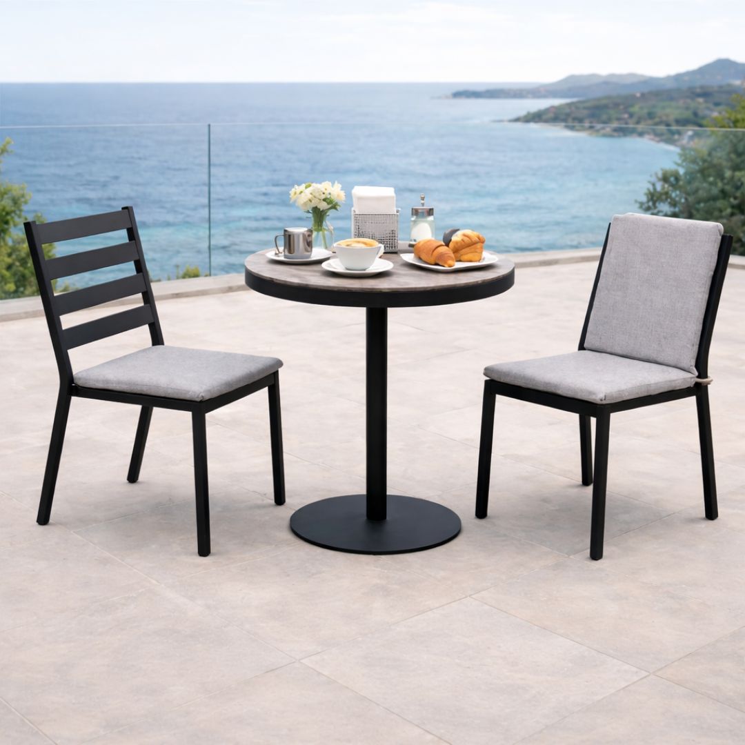 Conjunto de Mesa y silas ADELID 70 /GRACIELA perfecto para cafeterías y restaurantes que necesitan mesas compactas para dos personas. Su diseño funcional permite crear espacios acogedores con resistencia y durabilidad.