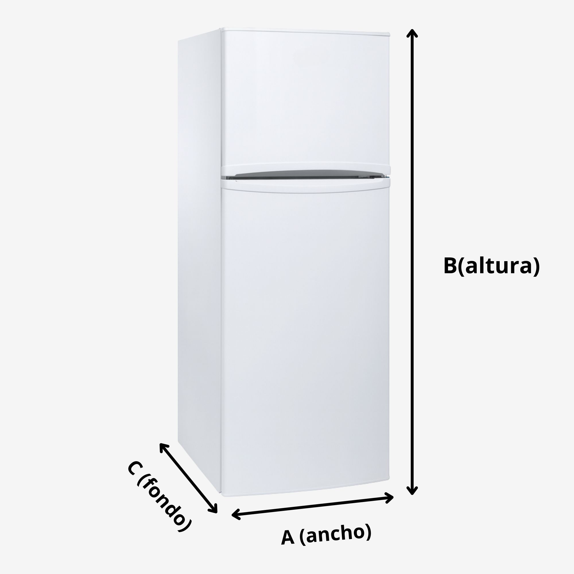 Con una cinta métrica, toma la medida desde la base del frigorífico hasta la parte superior. Esta será la altura (Alto) de tu funda. Asegúrate de medir recto y sin inclinar la cinta.