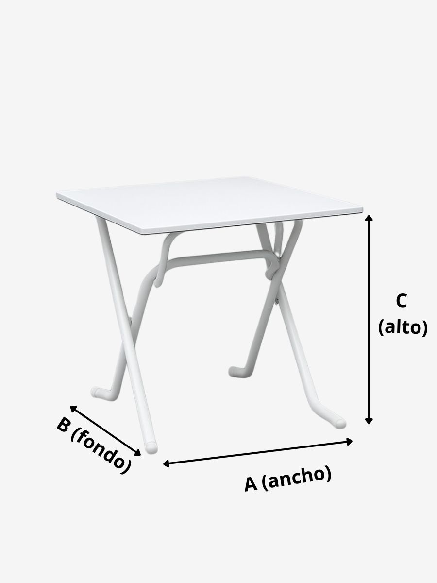 - Mide el Fondo (B): Mide la longitud del lado contiguo o la profundidad de la mesa. En mesas cuadradas, A y B suelen ser iguales.