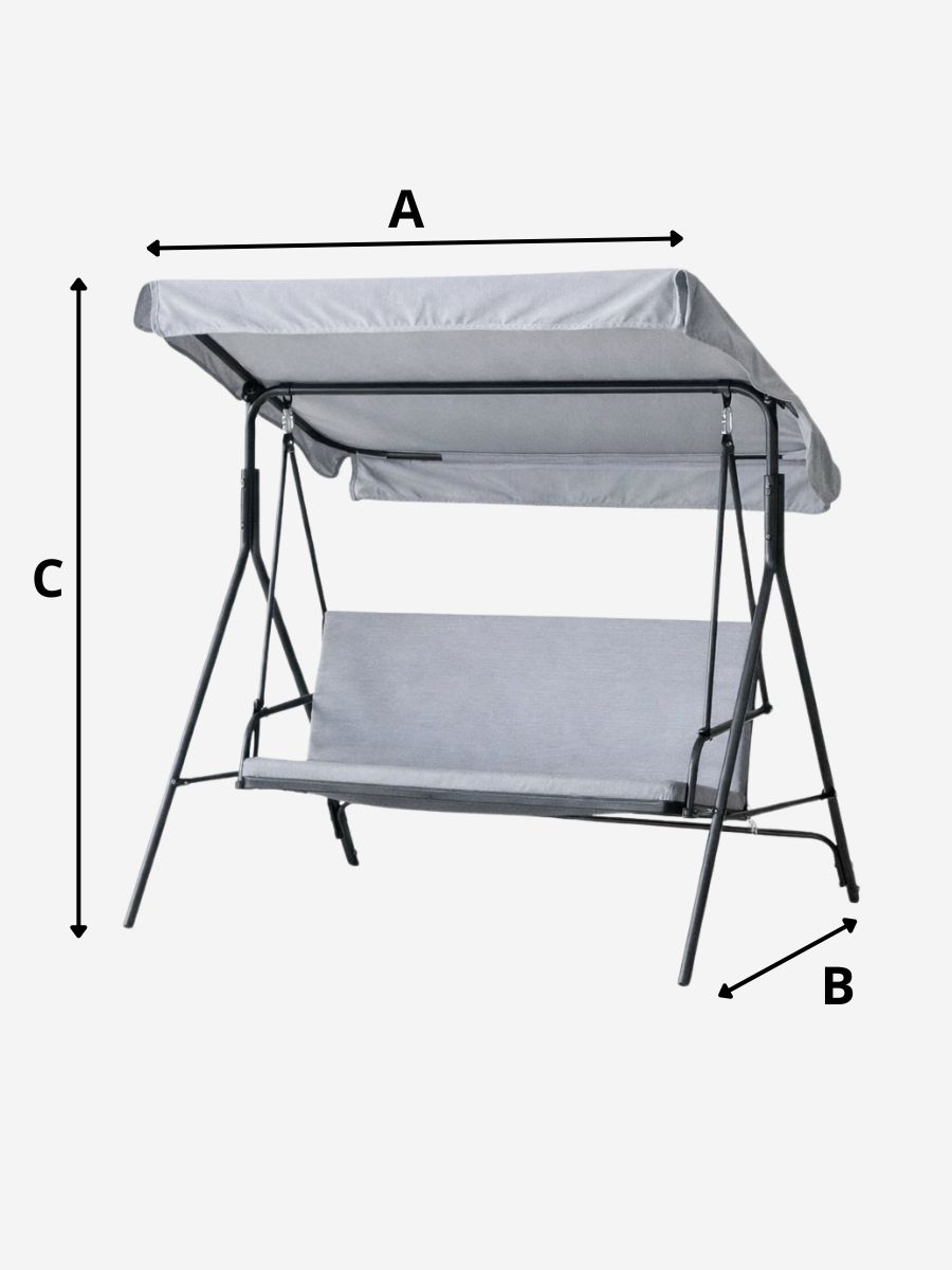 Mide el Ancho (A): Mide la longitud total del balancín, de un extremo al otro. Si el balancín tiene techo o estructura lateral, mide la parte más ancha.