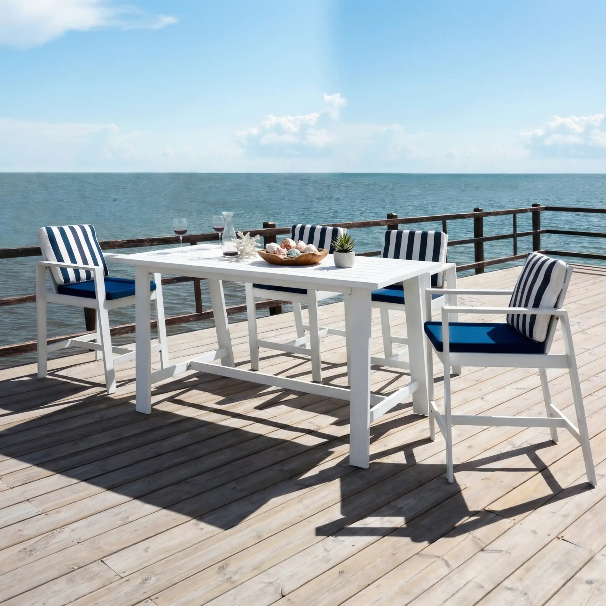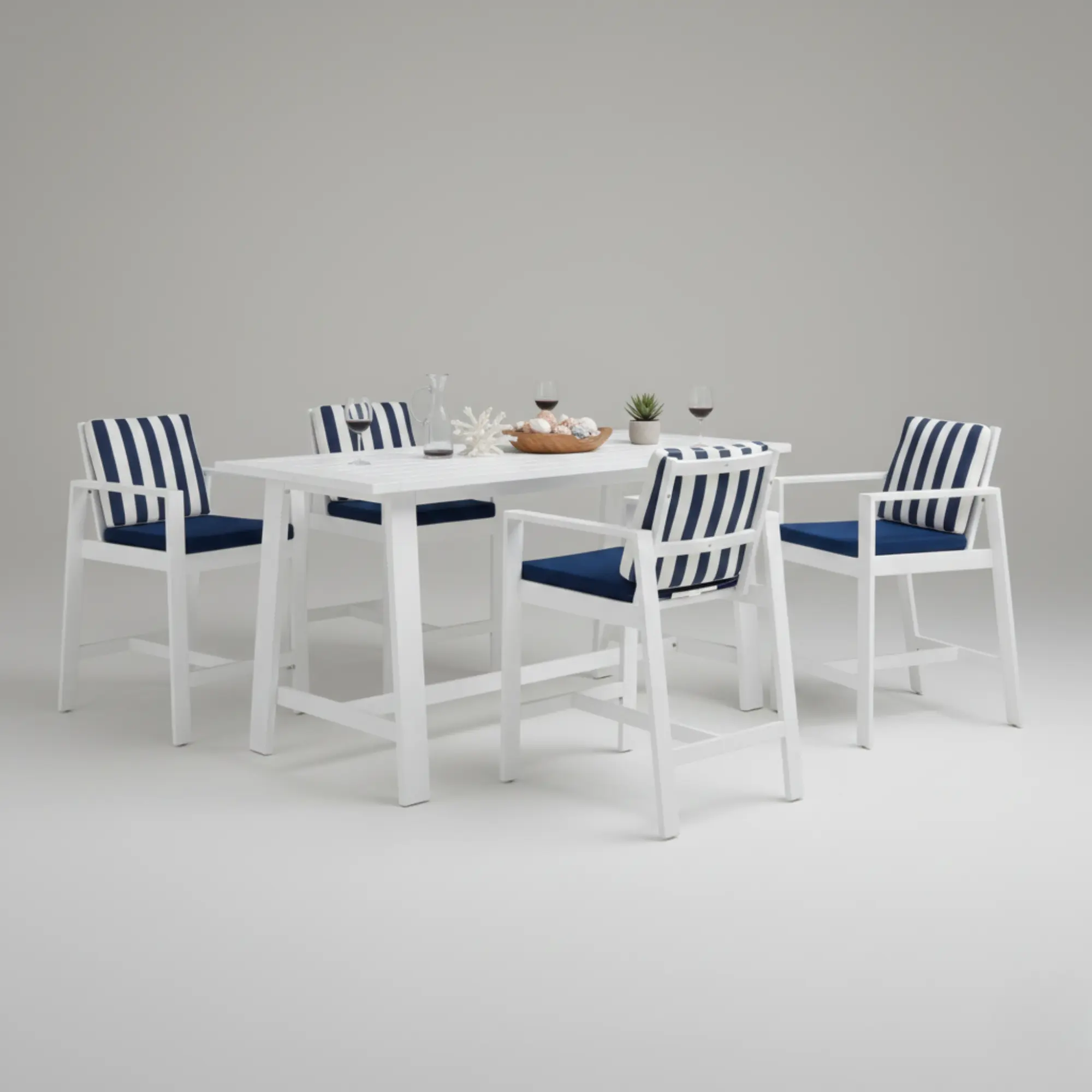 La mesa alta de bar Marlet 180 destaca por su diseño sofisticado y estructura de aluminio resistente , perfecta para crear ambientes modernos en terrazas, jardines y espacios al aire libre . Su tamaño amplio la hace ideal para reuniones y eventos , ofreciendo comodidad y durabilidad frente al clima.