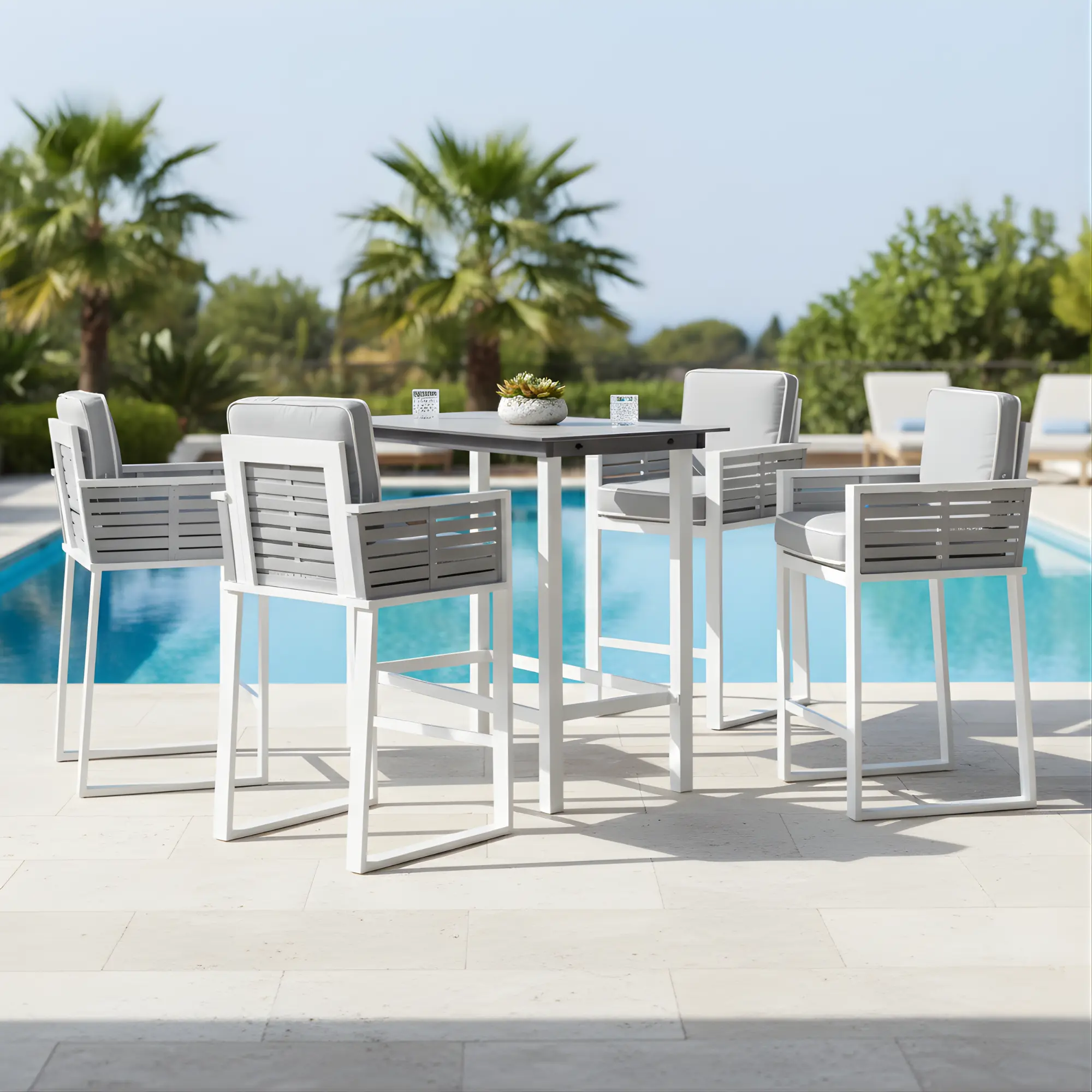 La mesa alta Boracay 160 destaca por su diseño contemporáneo y estructura resistente , ideal para terrazas, jardines y bares al aire libre . Fabricada con materiales robustos , ofrece una superficie amplia para reuniones, comidas o eventos al exterior, soportando con facilidad las condiciones climáticas.