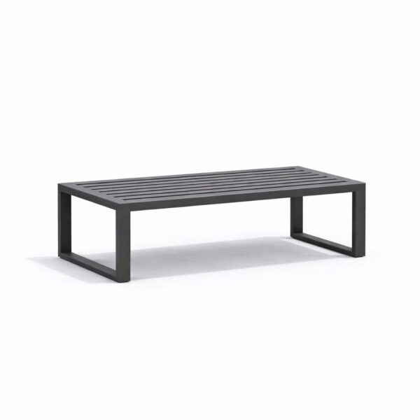 Mesa de centro premium para exterior con superficie de 120×60 cm. Elegancia, amplitud y máxima resistencia nacional.