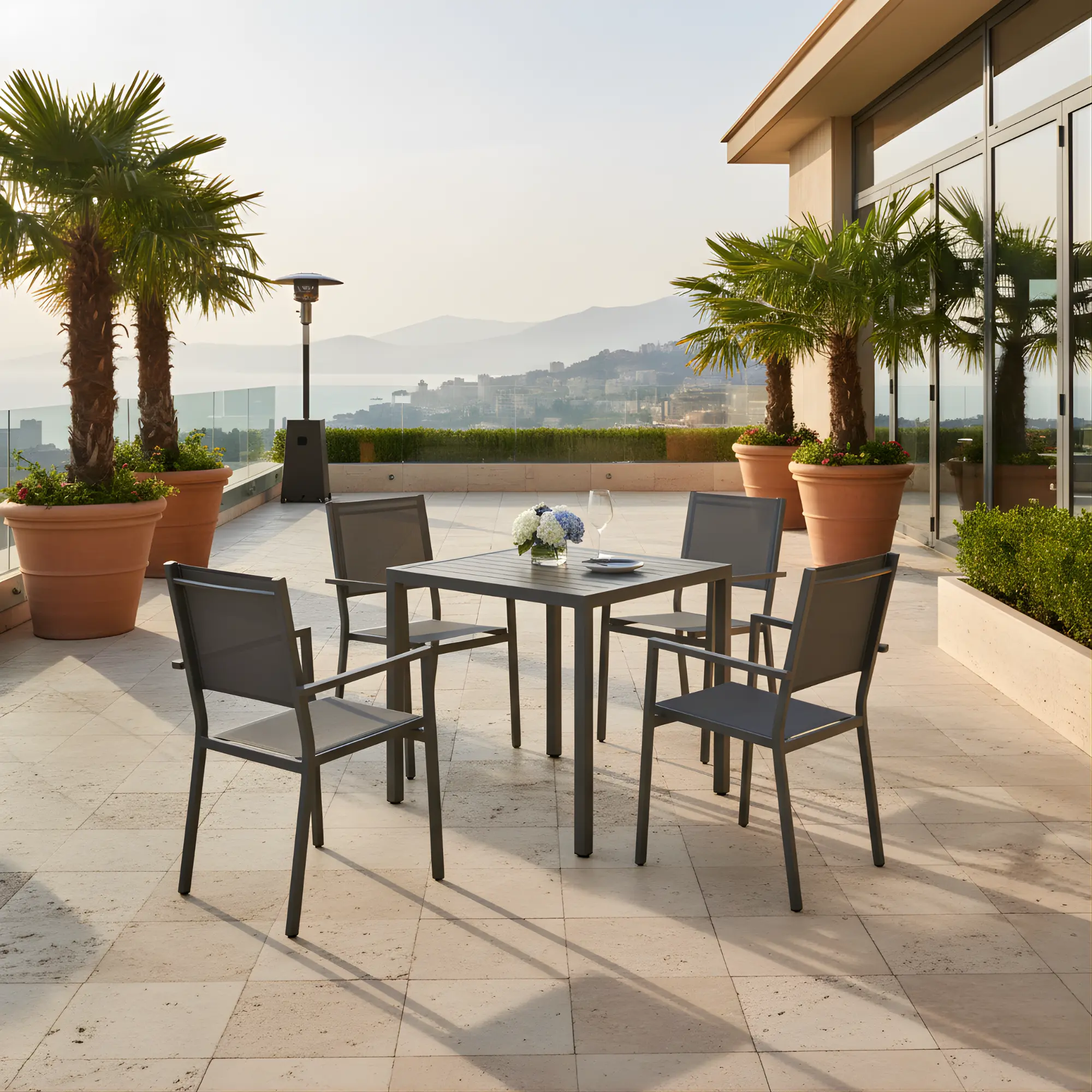 La mesa de hostelería Melea 80 combina diseño, resistencia y funcionalidad. Ideal para bares, restaurantes y terrazas, es apta para interiores y exteriores, fácil de mantener y altamente duradera.