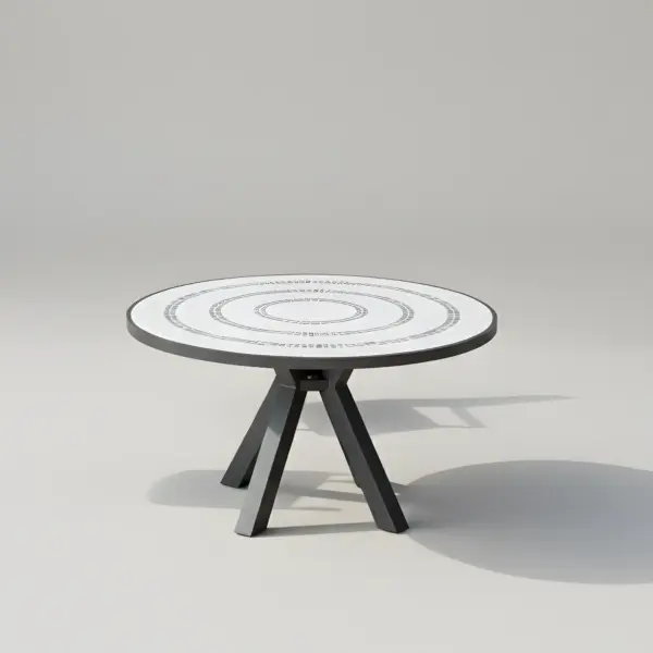 La mesa de mosaico Harnau 150 Ø es una pieza única que combina diseño y funcionalidad. Su estructura de aluminio la hace resistente y ligera, ideal para jardines, terrazas y patios. El tablero está compuesto por mosaicos colocados artesanalmente, lo que garantiza un acabado exclusivo en cada mesa. Gracias a su diámetro de 150 cm, es perfecta para reunir a familiares y amigos en comidas o reuniones al aire libre. Su estilo clásico y atemporal aporta un toque elegante a cualquier espacio exterior.