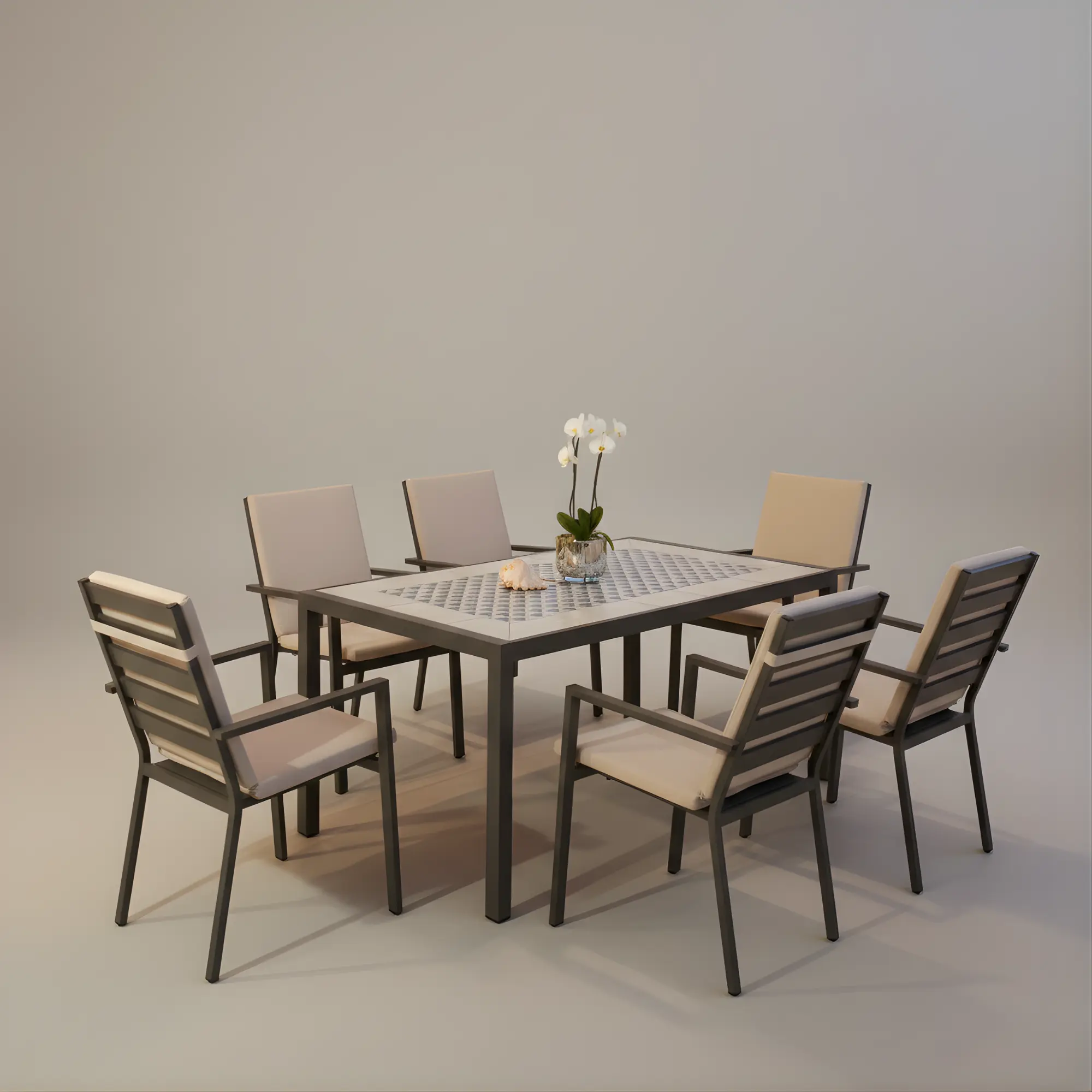 La mesa de mosaico rectangular Góndola 160 destaca por su diseño artesanal y estructura robusta. Su tablero de mosaico de alta calidad y su tamaño amplio la hacen ideal para terrazas y jardines, ofreciendo elegancia y durabilidad.