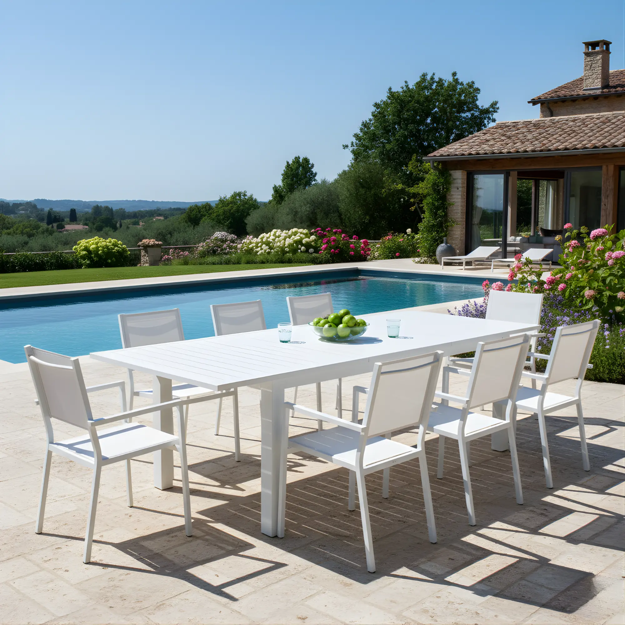 La mesa extensible de exterior Camelia 220 es perfecta para disfrutar al aire libre. Con un diseño elegante y materiales resistentes, se adapta fácilmente a diferentes tamaños, ofreciendo funcionalidad y estilo en cualquier terraza o jardín.