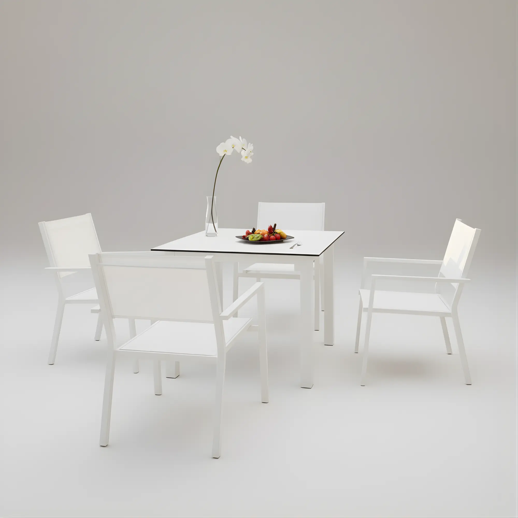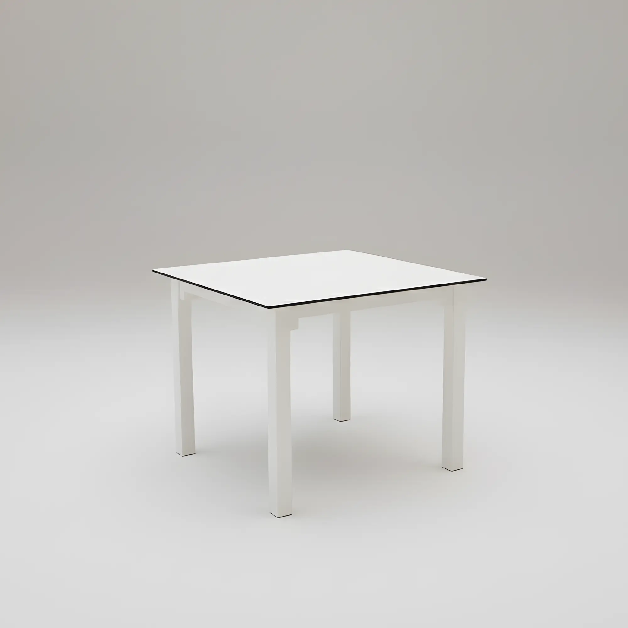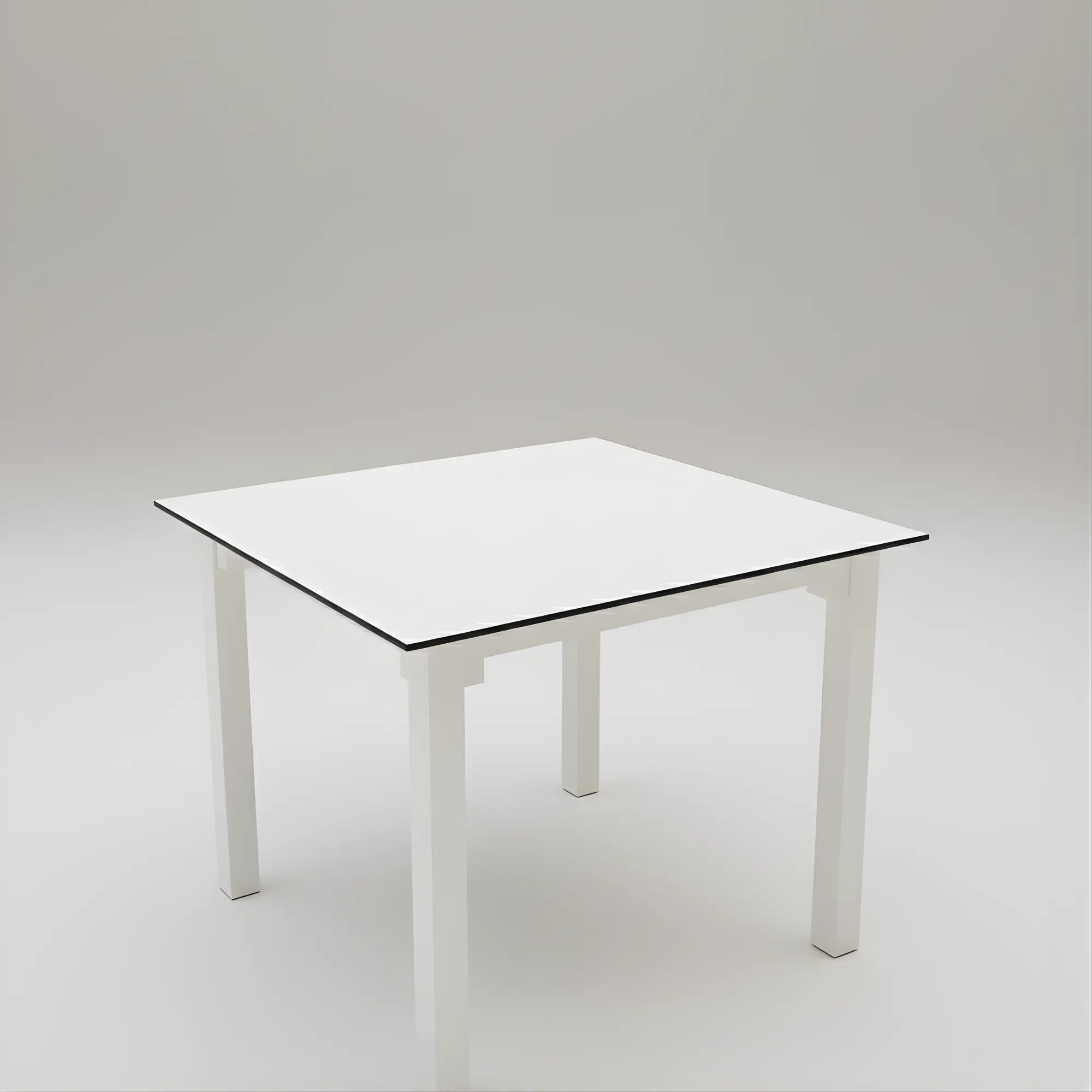 Dimensiones: 90x90x76 cm. Material: Estructura de aluminio, tablero de HPL. Colores de estructura: Blanco, marrón, antracita, nude, melocotón, champagne. Colores de tablero: Blanco, pizarra, argenta, maderma.
