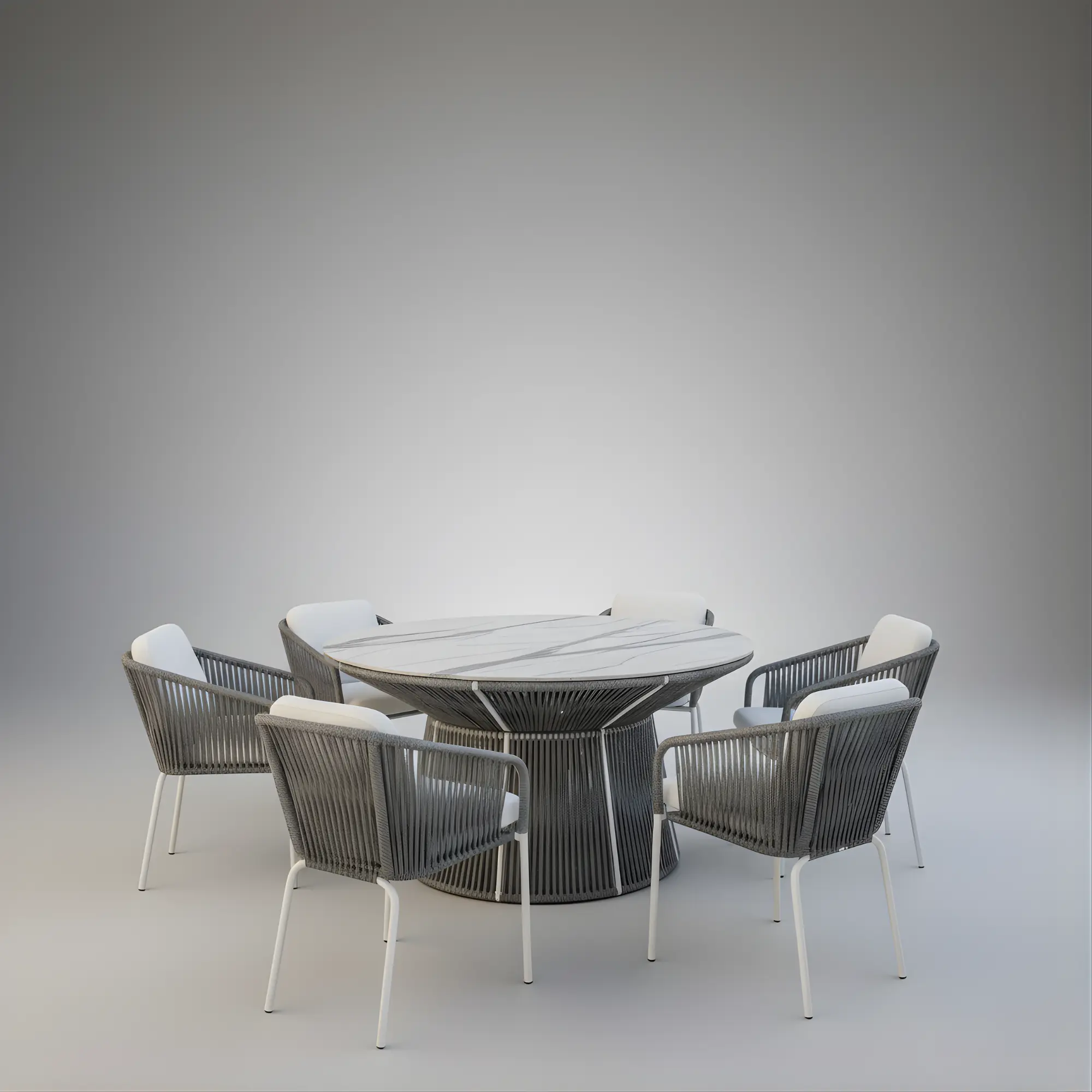 La Mesa Rodhos-150 es una opción premium para exteriores con estructura de aluminio, detalles en cuerda trenzada y tablero fenólico estos tableros son extremadamente duraderos, resistente al calor, la humedad y las manchas. Ideal para jardines, terrazas y hostelería. Fabricado en España. Venta a profesionales.