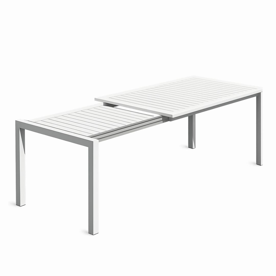 Disponible en formato extensible para adaptarse a distintas necesidades de espacio en el comedor exterior.
