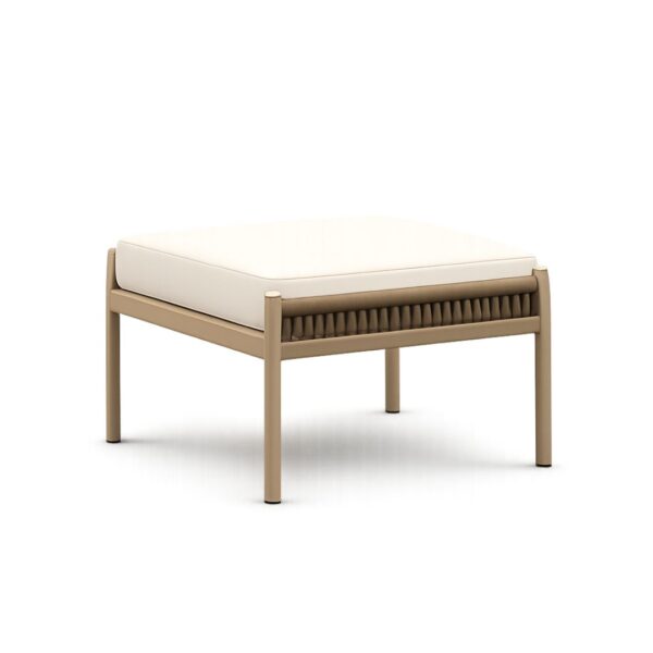 Reposapiés de exterior JAVA con estructura de aluminio reforzado y fabricación nacional. Un complemento ergonómico y ligero que combina perfectamente con los sillones y sofás de su serie para un descanso total.