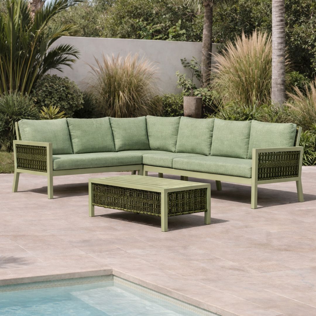 Set Rinconera de Jardín Havana-30 ideal para unir zona de relax y comedor exterior, con estructura de aluminio y cuerda trenzada.