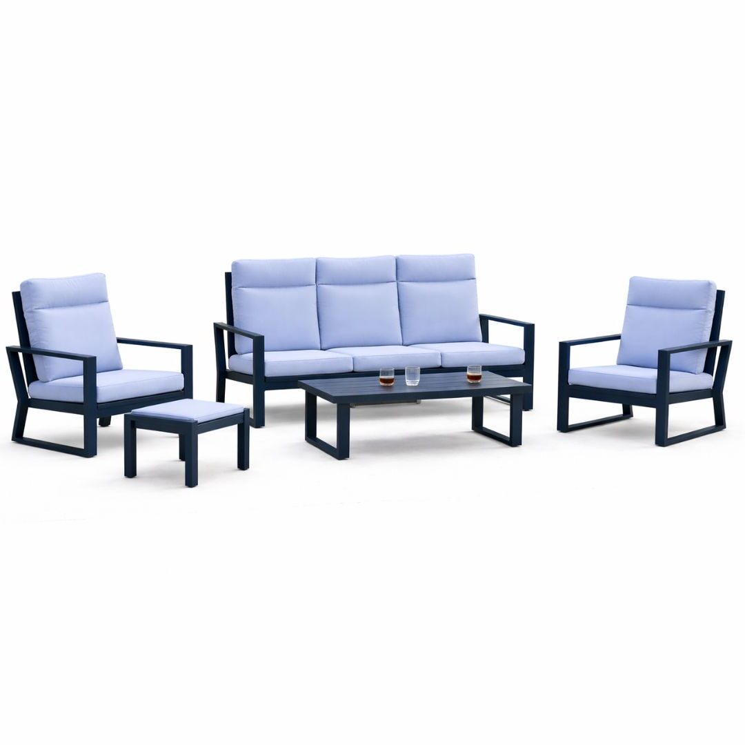Este exclusivo set de exterior BOLONIA 8 XL ofrece una amplitud superior, incluyendo un sofá de tres plazas XL, dos sillones ergonómicos y una mesa de centro coordinada. Su estructura de aluminio reforzado de fabricación nacional garantiza una durabilidad extrema y resistencia total a la corrosión, aportando elegancia y máximo confort.