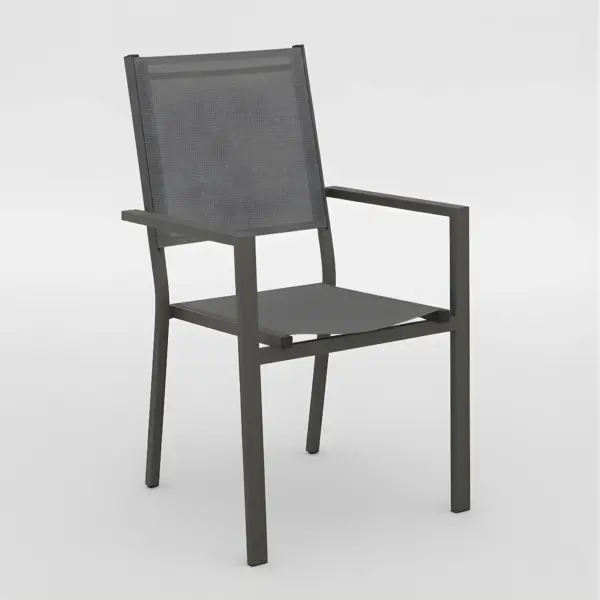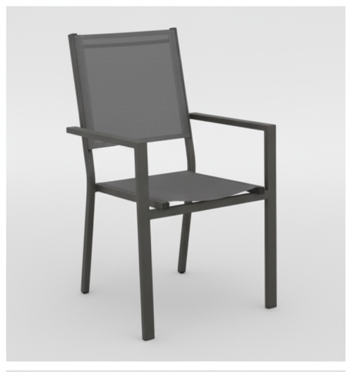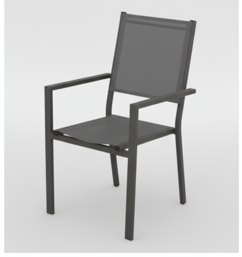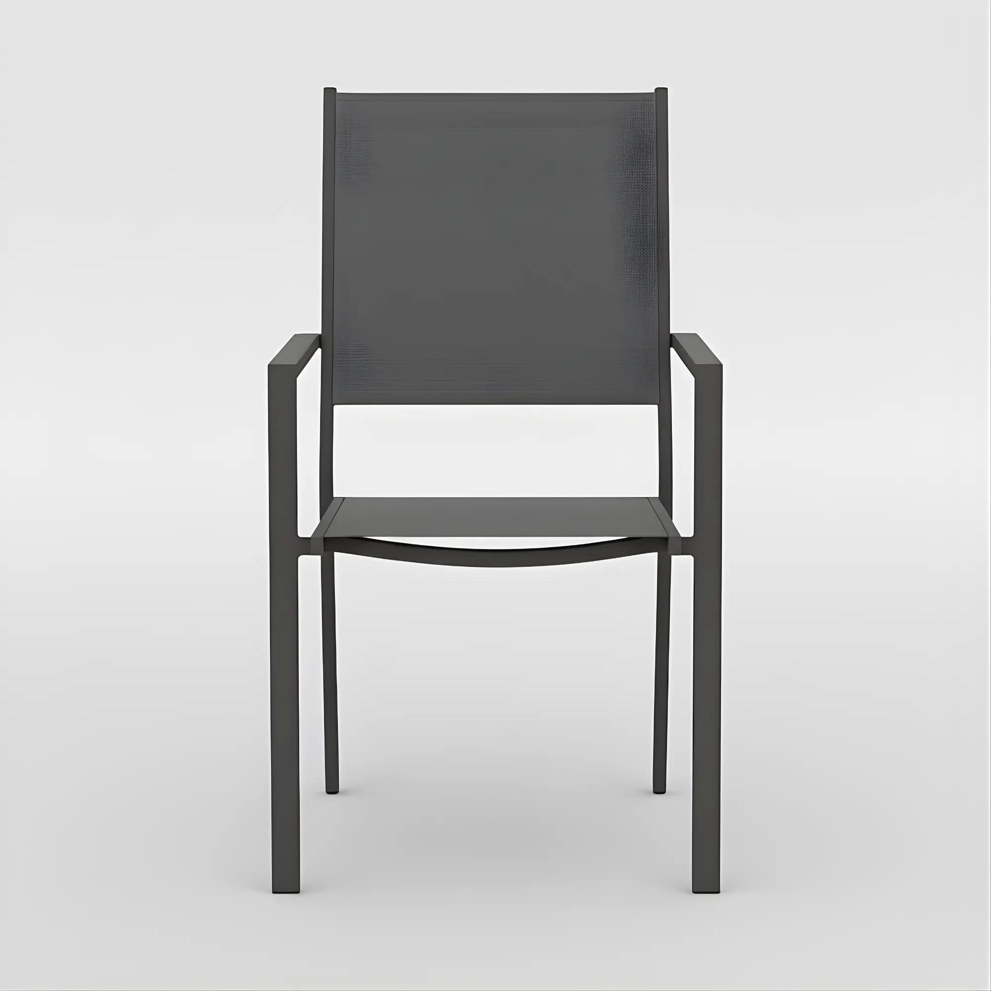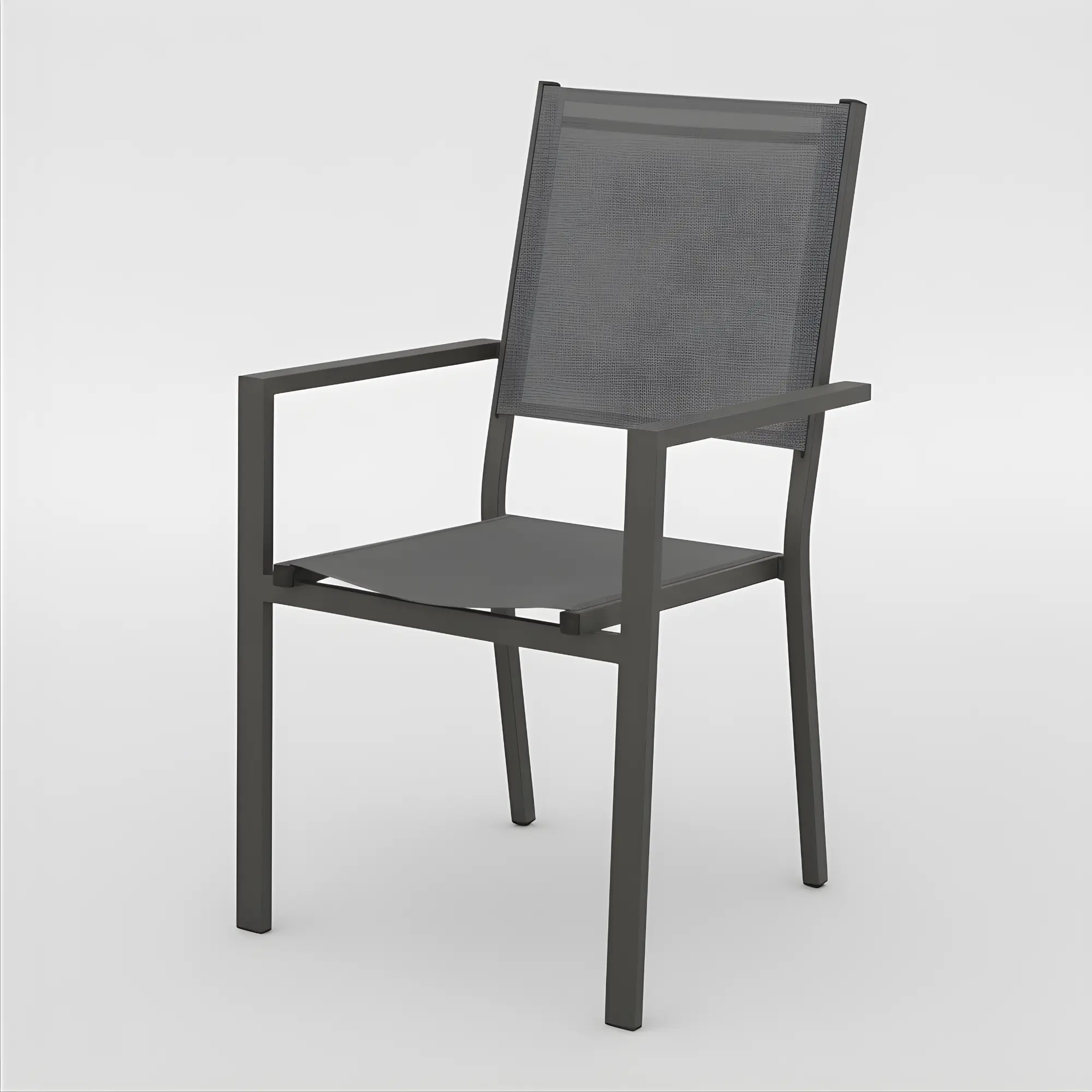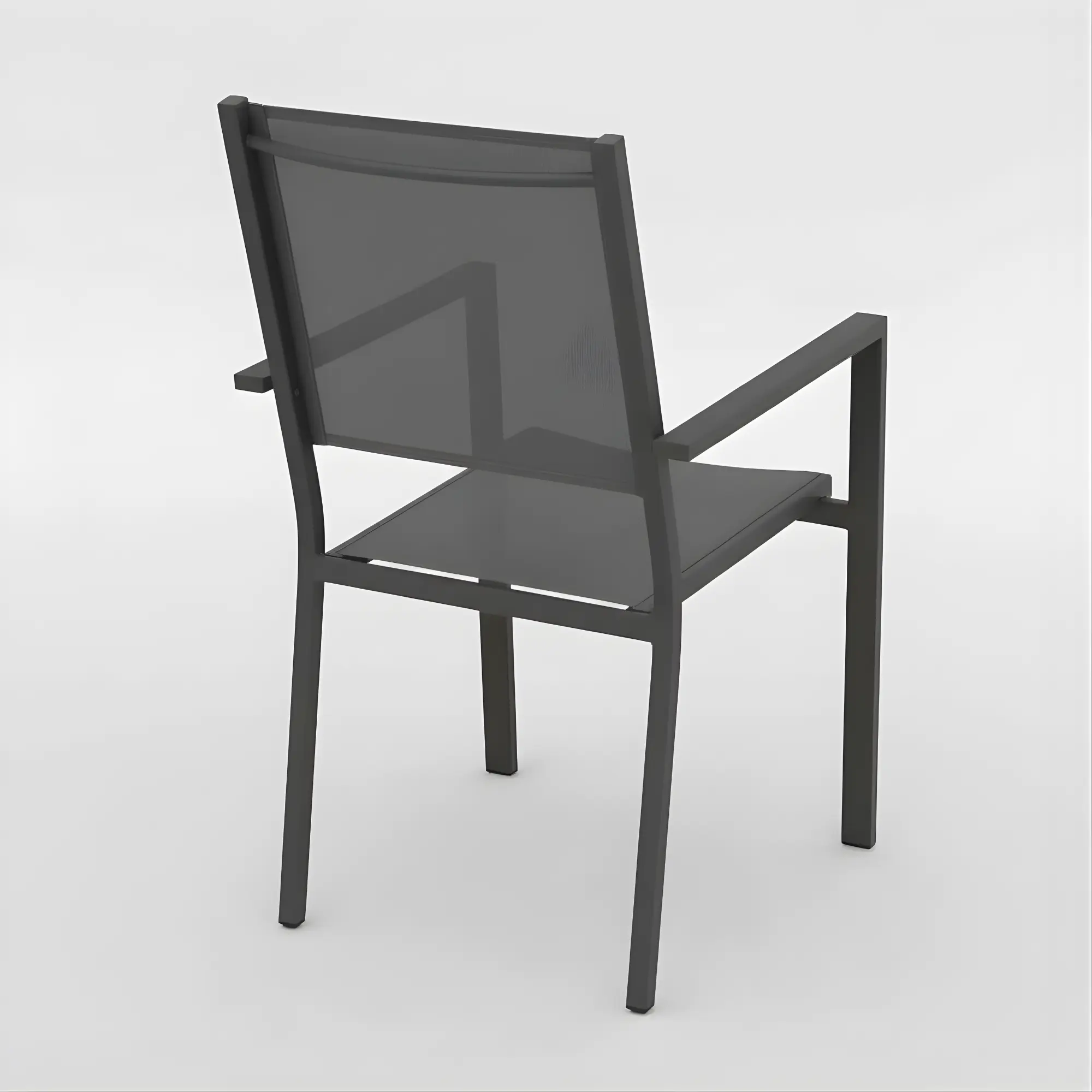 La silla de aluminio y textilene Roma es ligera, resistente y cómoda. Con diseño moderno, es ideal para exteriores y perfecta para jardines, terrazas y espacios comerciales.