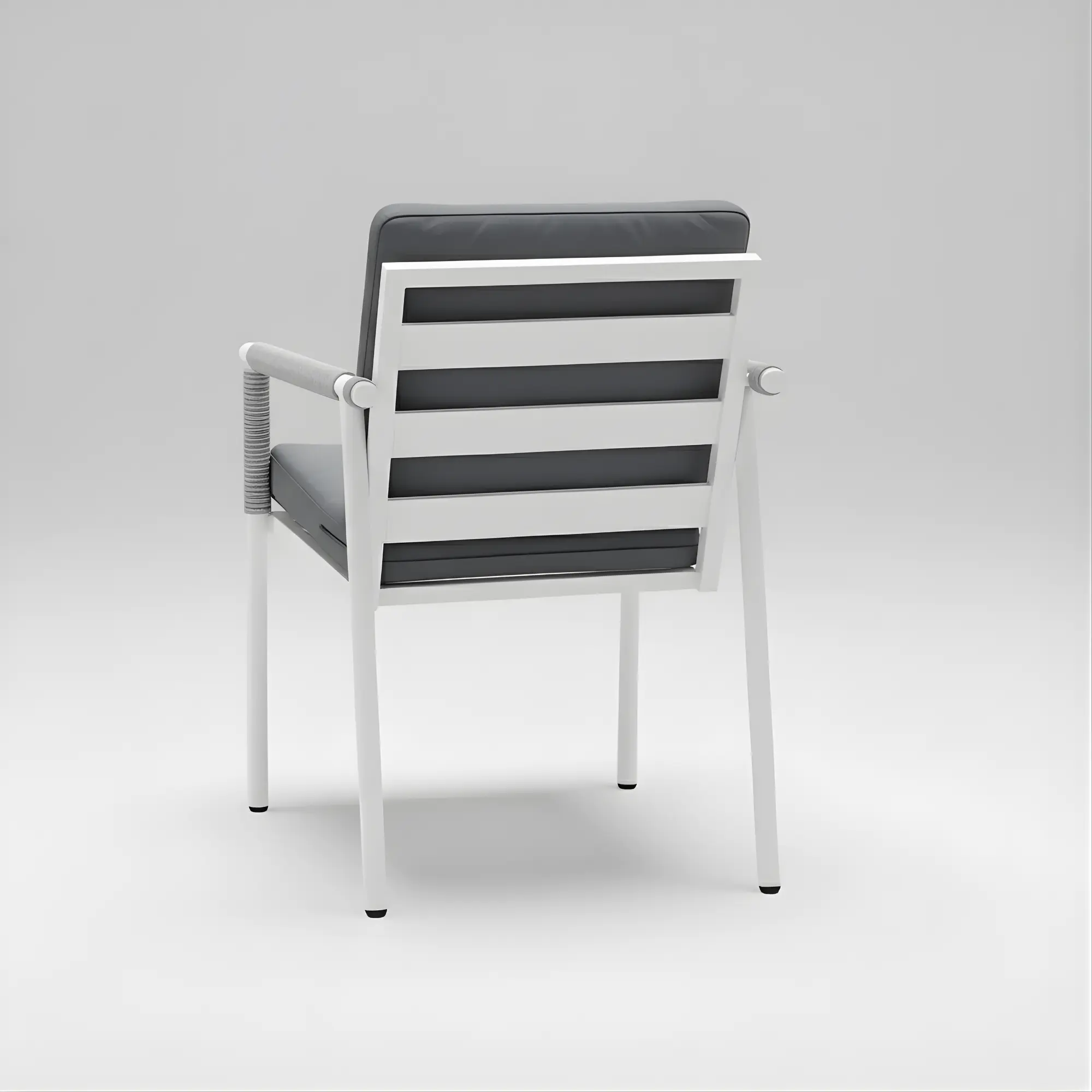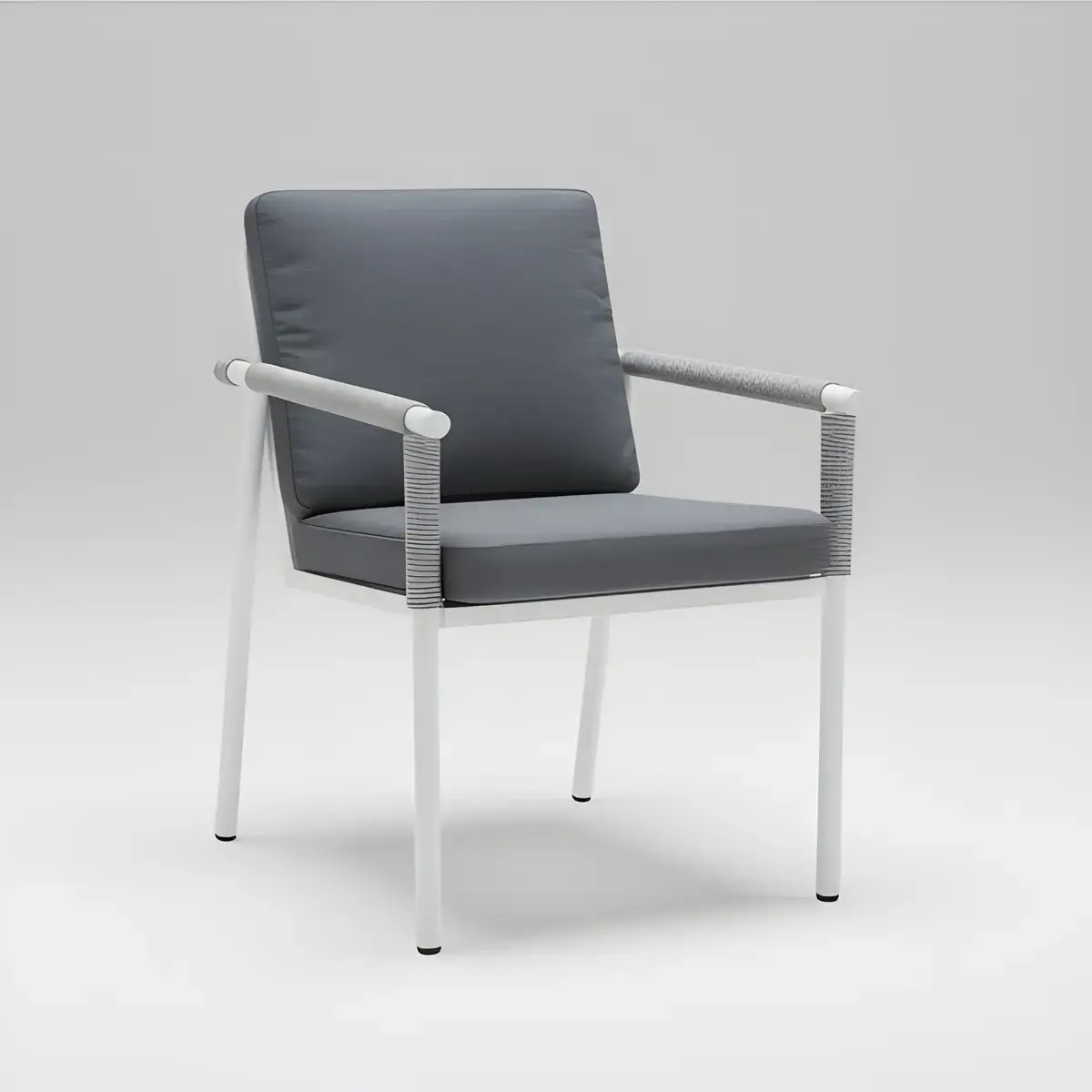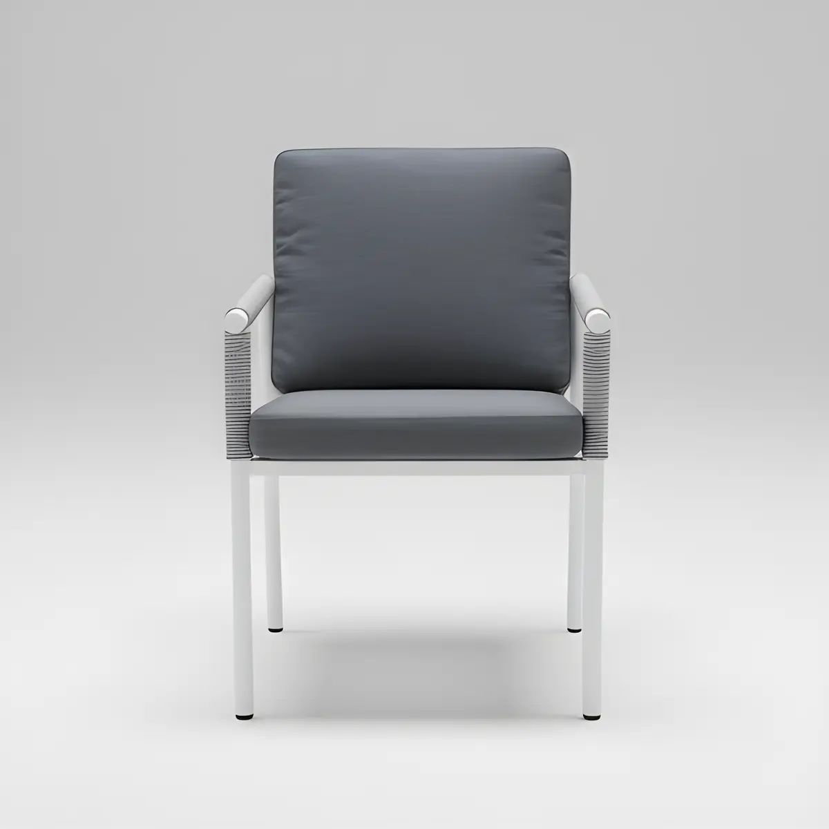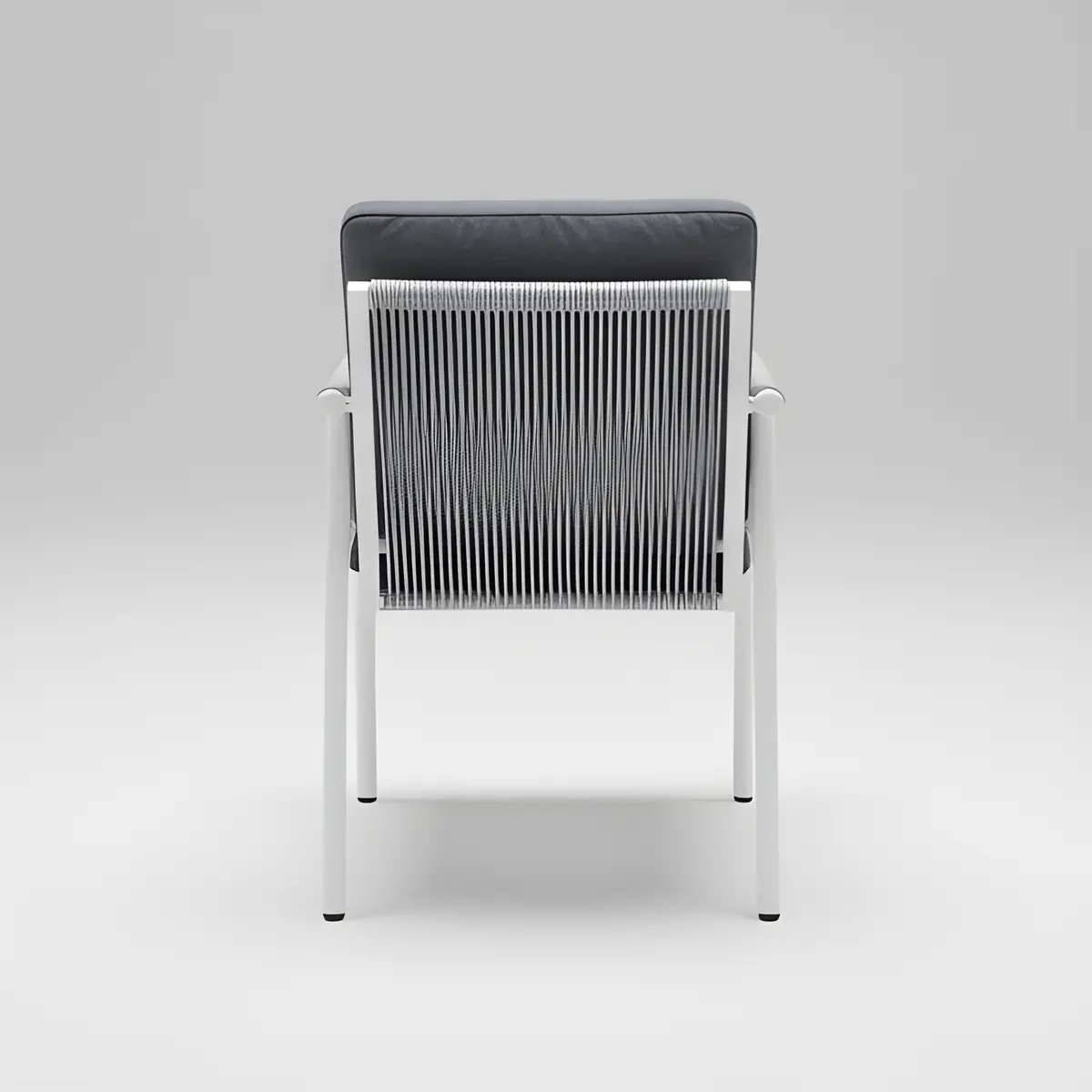 La silla de cuerda y aluminio Merlot-30 es cómoda, resistente y moderna. Con estructura de aluminio y asiento de cuerda trenzada, es ideal para exteriores y perfecta para jardines, terrazas y espacios comerciales.