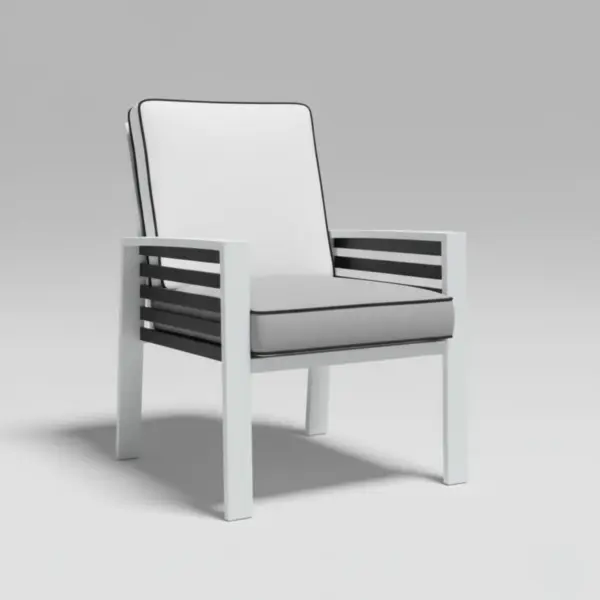 La silla Farah-3 ofrece una estructura de aluminio robusta y un diseño elegante. Ideal para terrazas y jardines, proporciona comodidad y durabilidad en espacios exteriores.