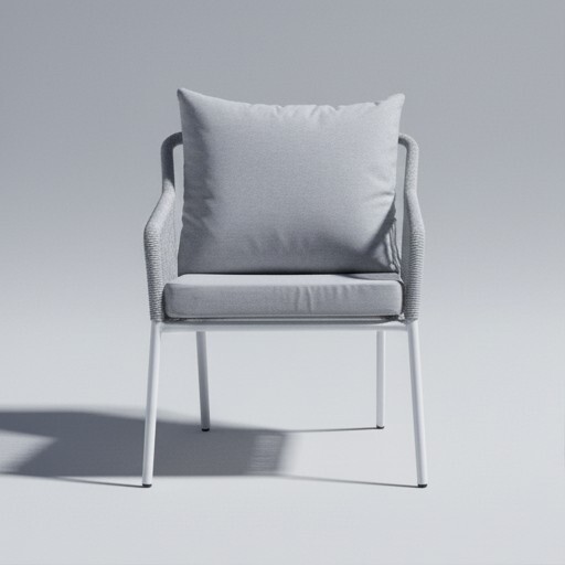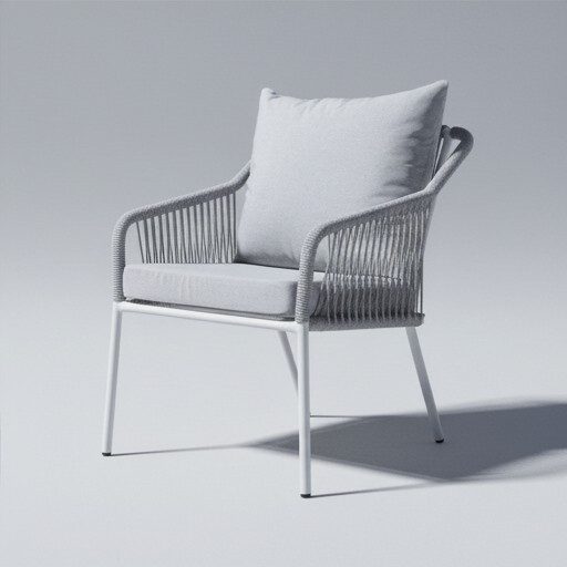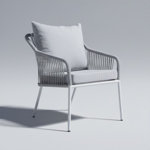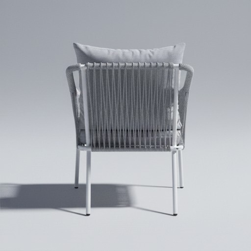 Silla versátil con diseño moderno y estructura de cuerda tejida. Su respaldo ergonómico garantiza una experiencia cómoda.