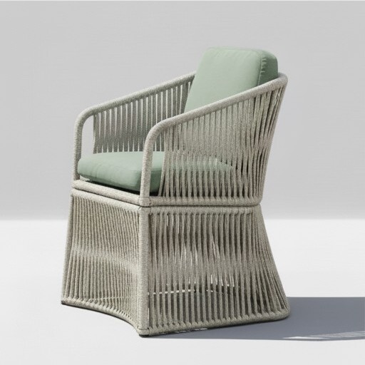 Materiales: Aluminio y cuerda náutica redonda. Medidas: 72X61X87 H. Colores de estructura y cuerda personalizables. Producto 100% fabricado en España.