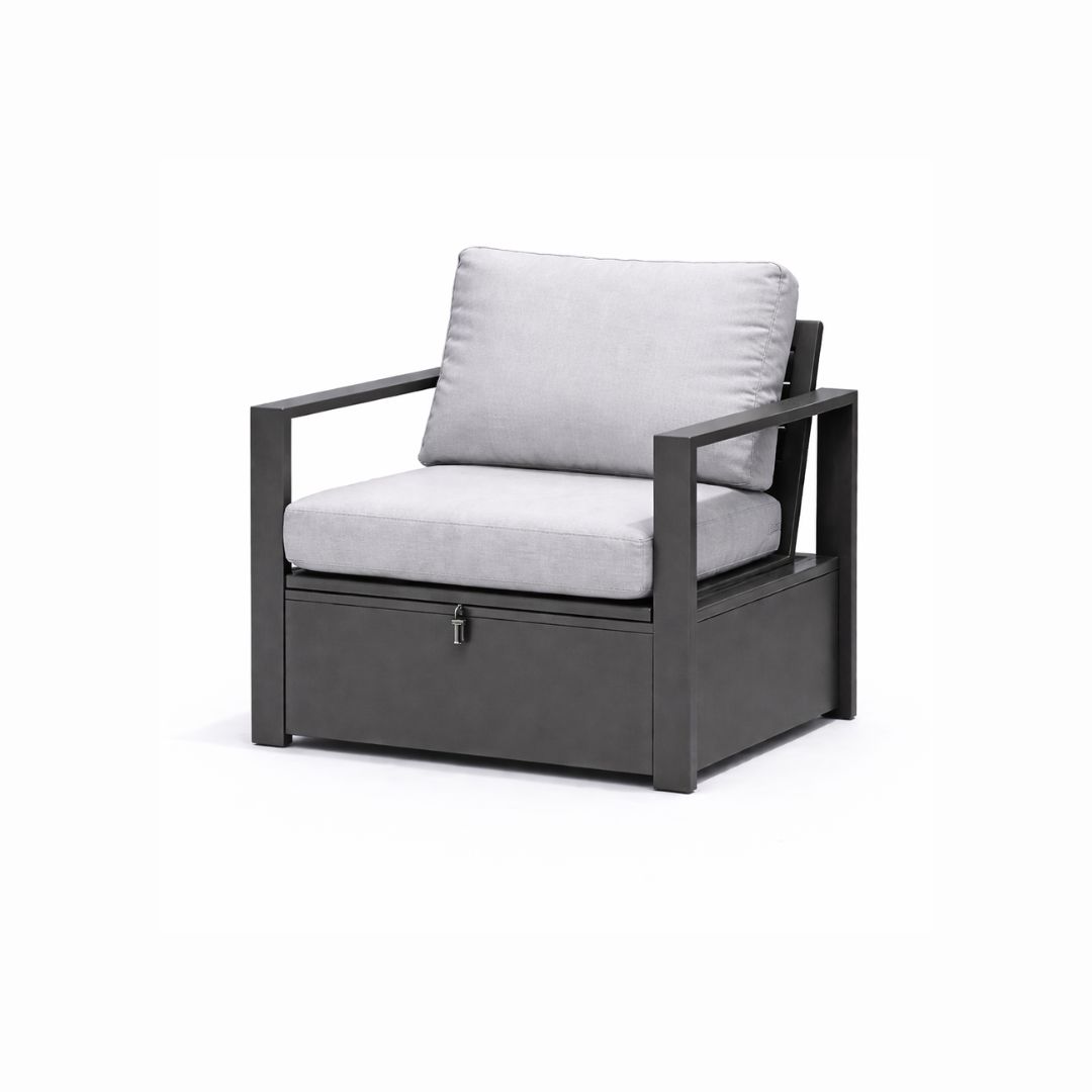 Sillón de jardín baúl TISEN con baúl integrado 100% estanco. Confort, diseño moderno y protección total.