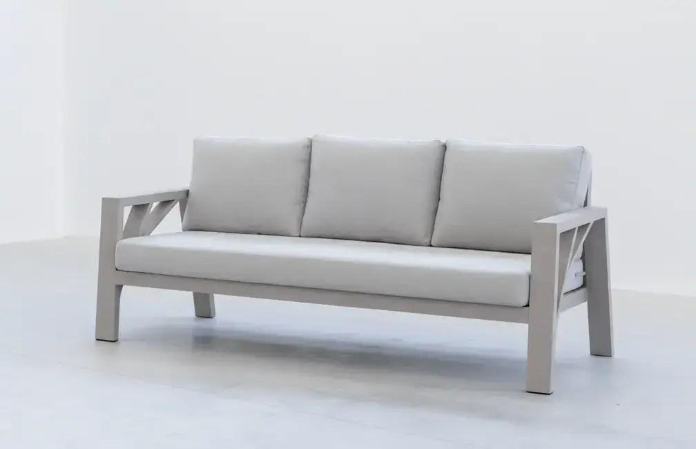 Atributos Destacados de la Colección Bolonia Configuración a tu Medida: Disponible en múltiples formatos —sillón individual, sofá de 2 plazas y sofá de 3 plazas— para que puedas diseñar el salón de exterior que se adapte perfectamente a tu espacio y necesidades. Diseño Moderno y Elegante: Una estética de líneas puras y contemporáneas que se integra fácilmente en cualquier terraza o jardín, aportando un estilo actual y sofisticado. Confort Superior Garantizado: Equipada con una completa y confortable cojinería de alta densidad, diseñada para ofrecer una experiencia de descanso y bienestar inigualable. Estructura 100% Aluminio: Fabricada sobre una base de aluminio que le confiere gran ligereza para un fácil manejo, a la vez que garantiza una total resistencia a la corrosión y al paso del tiempo. Calidad de Fabricación Nacional: Producida íntegramente en España y respaldada por 3 años de garantía, asegurando unos acabados de alta calidad y una durabilidad excepcional para tu total tranquilidad.