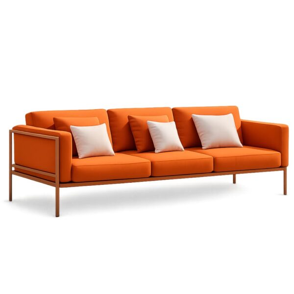 Elegante sofá de exterior ANDROS de tres plazas con estructura de aluminio reforzado de sección generosa. Su diseño robusto y arquitectónico ofrece un confort superior, garantizando una resistencia total a la corrosión en jardines y terrazas de gran formato.