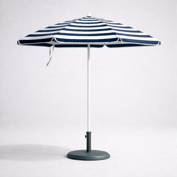 Sombrilla publicitaria de aluminio ideal para promocionar marcas en terrazas de hostelería o eventos. Permite personalizar la cubierta con logotipos corporativos, proporcionando sombra a clientes y aumentando la visibilidad de la marca en restaurantes, bares o campañas promocionales.