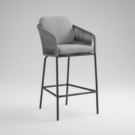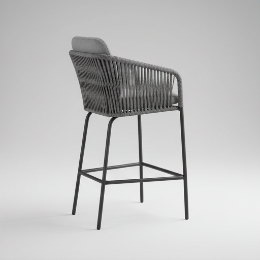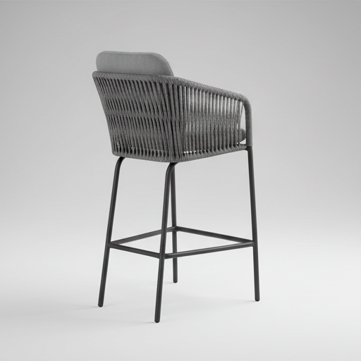 Dimensiones: 50x55x115 cm. Materiales: Aluminio y cuerda. Uso: Bar, terraza y exteriores.