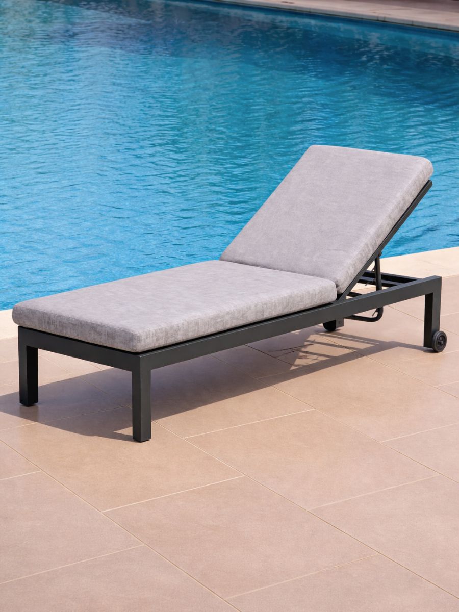 Tumbona Evora para hostelería, diseñada para uso intensivo en exteriores. Estructura resistente, cómoda y de fácil mantenimiento, ideal para piscinas, hoteles y zonas de descanso.
