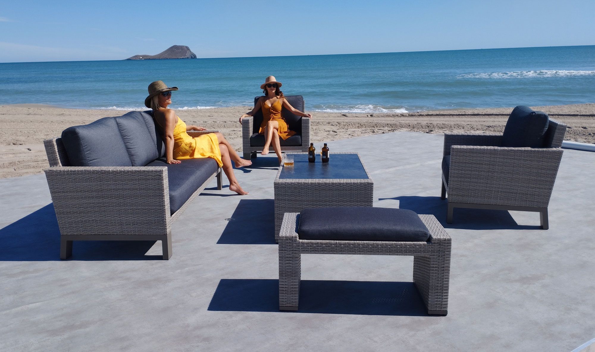 Fabricamos una amplia gama de mobiliario en ratán de primera calidad combinado con aluminio. Una opción ideal para su uso en exterior y diseñado para una larga vida y durabilidad.